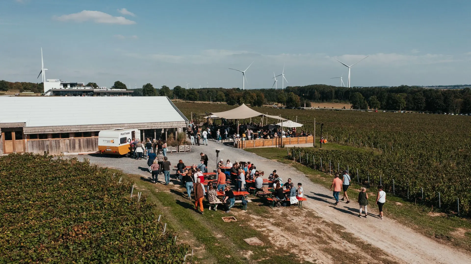 Installez-vous au cœur des vignes, aux pieds des éoliennes, et savourez un menu brasserie complet — entrée, plat et dessert — dans un cadre aussi unique que gourmand.