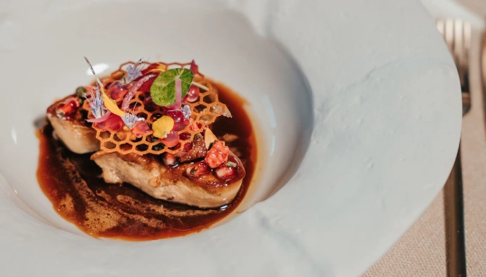 Vivez une expérience culinaire de haut standing à l'Impératif, restaurant gastronomique étoilé du domaine, avec un menu raffiné composé de deux entrées, un plat, un dessert et des amuse-bouches.
